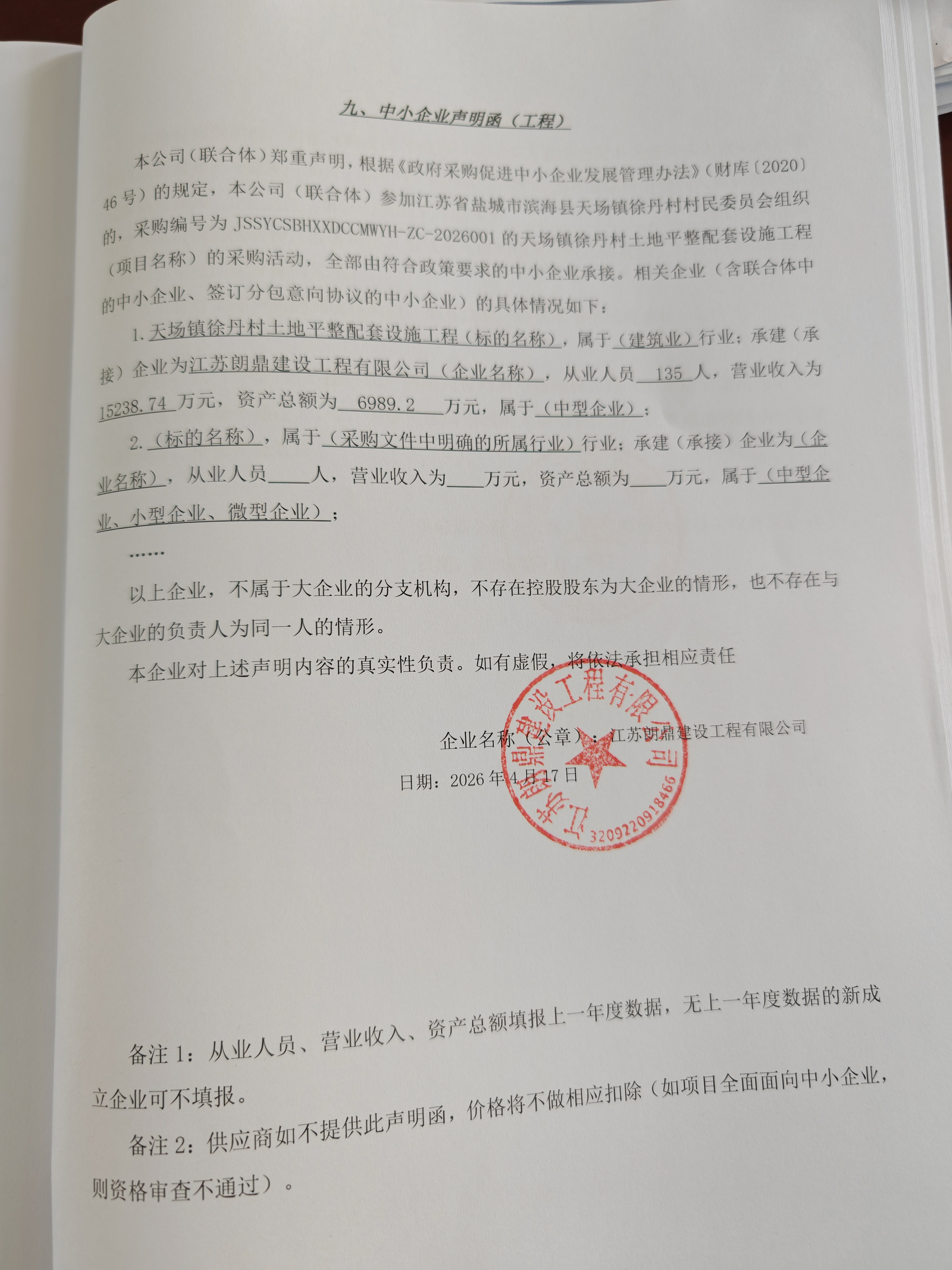 1.主要标的:天场镇徐丹村土地平整配套设施工程。
