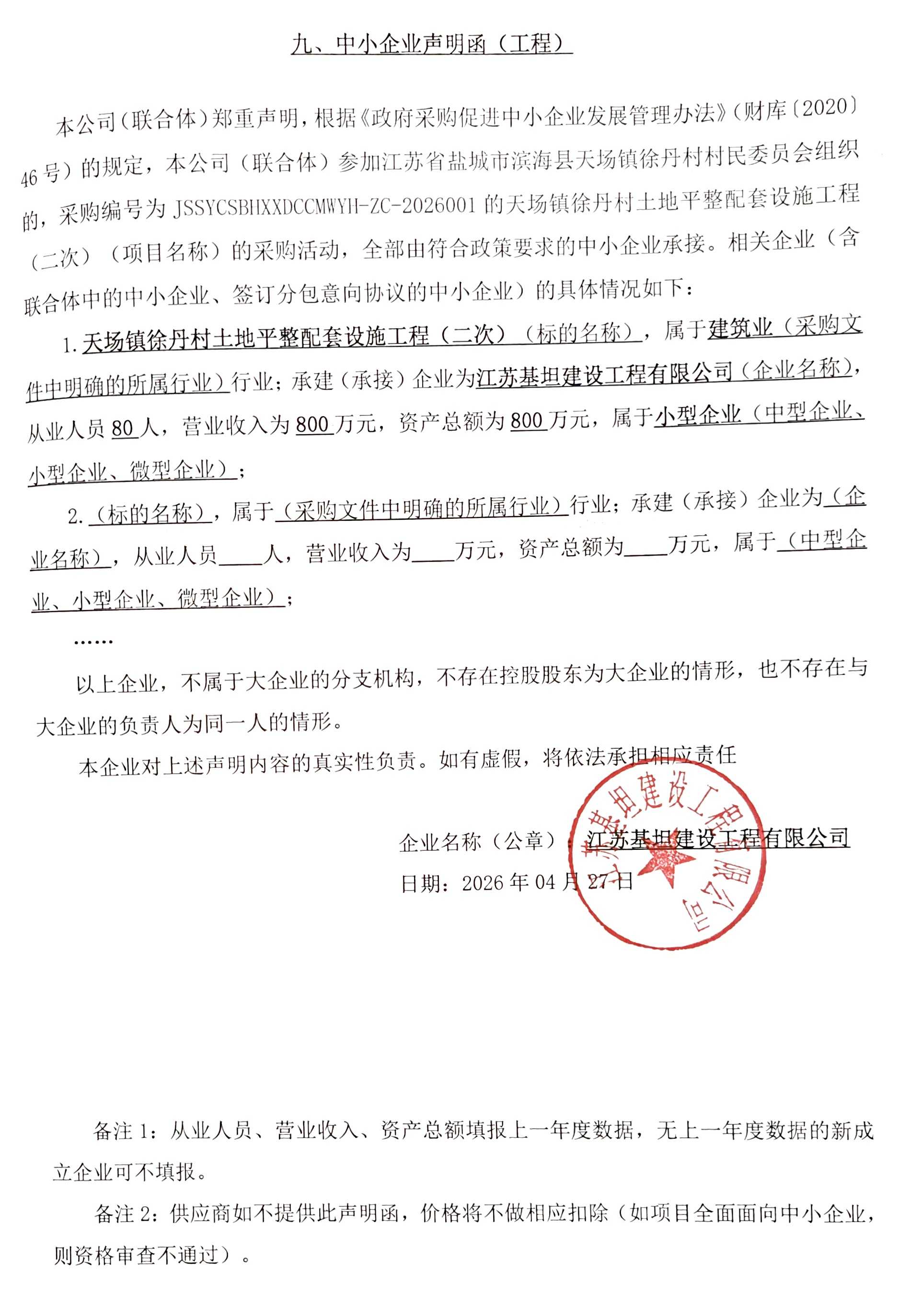 1.供应商名称:江苏基坦建设工程有限公司